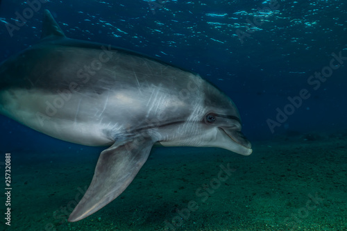 Fototapeta premium Dolphin swimming with divers in the Red Sea, Eilat Israel