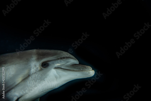 Naklejka premium Dolphin swimming with divers in the Red Sea, Eilat Israel