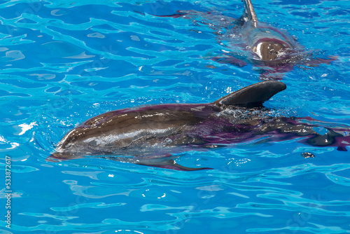 © schankz, Fototapeta premium Dolphin swims in the pool.