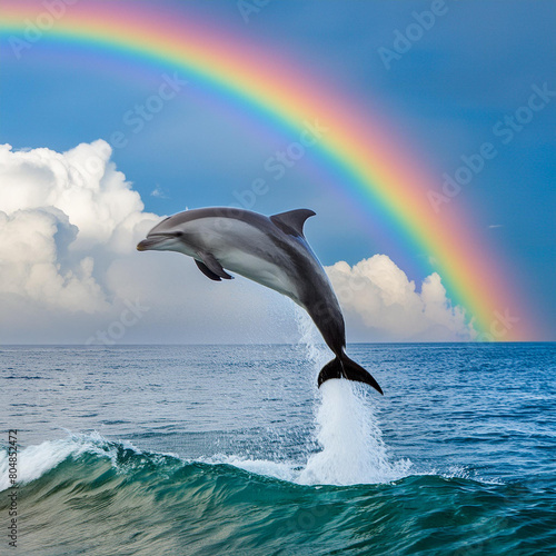 © Jedidiah, Fototapeta premium Dolphin Under a Rainbow