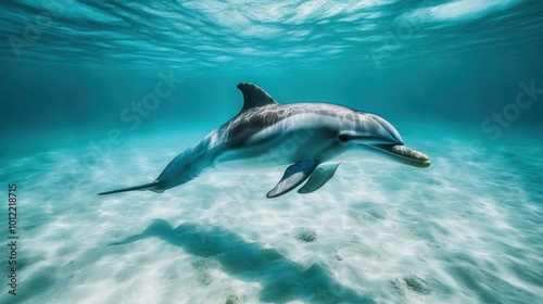 © yusufadi, Fototapeta premium Dolphin Underwater