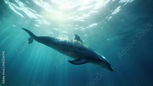 Obraz premium Dolphin Underwater, Generative AI, Illustration