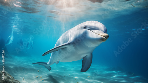 © Nittaya, Obraz premium Dolphin underwater look at the camera.