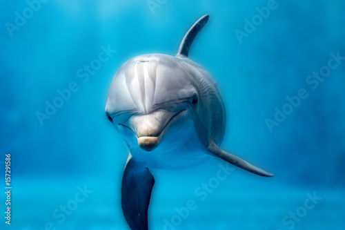 Obraz premium dolphin underwater on blues ocean close up look