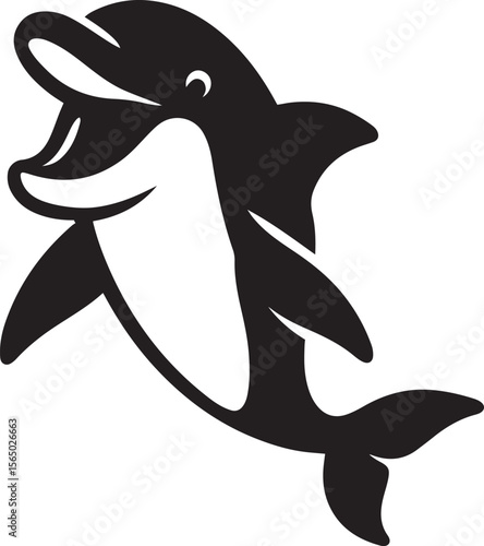 Obraz premium Dolphin vector graphic playful silhouette, Ocean mammal in action black and white