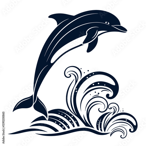 © JESMIN, Naklejka premium Dolphin vector silhouette black design white background