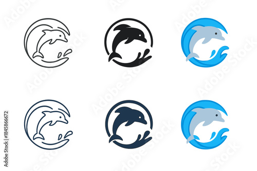 Fototapeta premium Dolphin Wave Splash. Dolphin Wave Ring, dynamic ocean icon showing a dolphin...