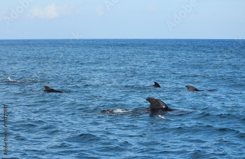 Obraz premium きれいな海でイルカやクジラの鑑賞 Dolphins and whales watching in ocean