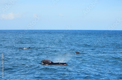 Obraz premium きれいな海でイルカやクジラの鑑賞 Dolphins and whales watching in ocean