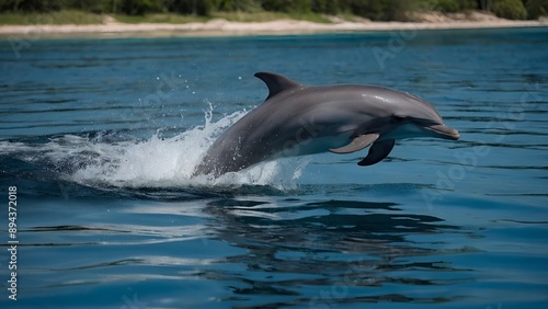 © Oleksandr, Naklejka premium Dolphins creating beautiful patterns as they leap together