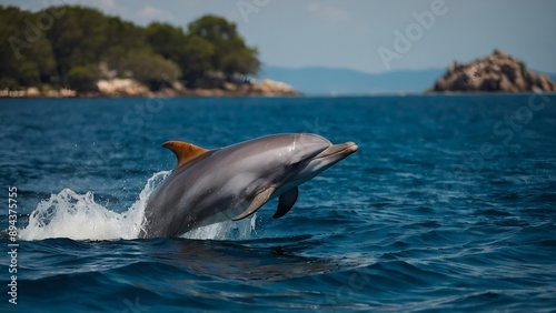 © Oleksandr, Fototapeta premium Dolphins frolicking together and making joyful splashes in the sea