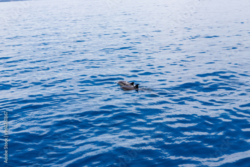 Fototapeta premium Dolphins in the water by the coast of Corfu, Greece