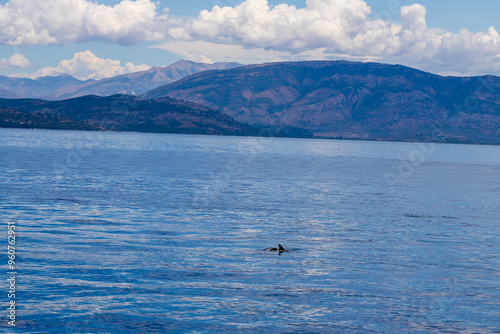 © Emanuil, Fototapeta premium Dolphins in the water by the coast of Corfu, Greece