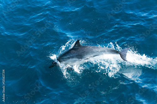 Obraz premium Dolphins jump in the Pacific ocean off the coast of Ventura, California