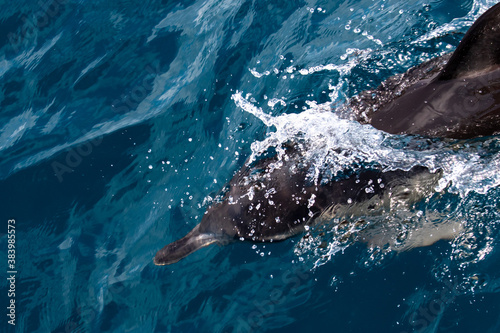 © Tatyana Khodorchenko, Naklejka premium Dolphins jump into the sea. Underwater world.