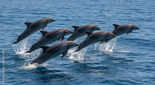 Fototapeta premium Dolphins Jumping in Ocean Water Spectacular Marine Display