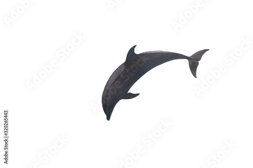 © Teerayuth, Fototapeta premium Dolphins jumping on a white background