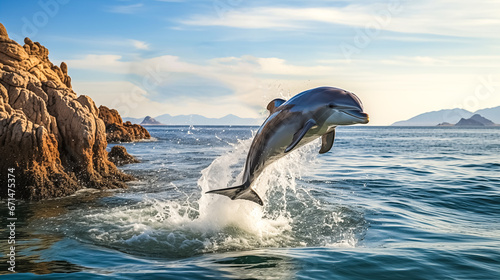 Obraz premium Dolphins jumping out of the water on a sunny day. 3d rendering.