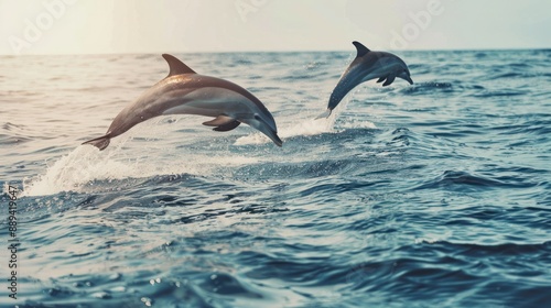 Obraz premium Dolphins jumping out of the water poster with