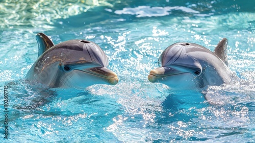 © นัสรีน ถนอมวงศ์, Naklejka premium Dolphins jumping playfully in the sea at loma water adventure vibrant environment close-up view