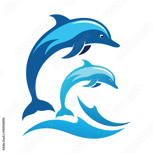 © ASHIQUE, Naklejka premium Dolphins Jumping Through Waves Ocean Life Playful Nature Illustration