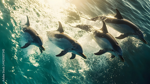 Obraz premium Dolphins leap from turquoise waves