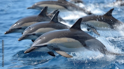 © Ardi, Fototapeta premium Dolphins leaping in a blue ocean (1)