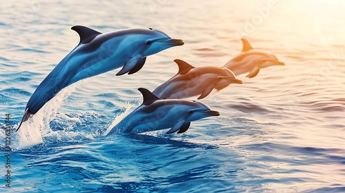 © terat, Obraz premium dolphins leaping ocean sunset wildlife - wildlife photography