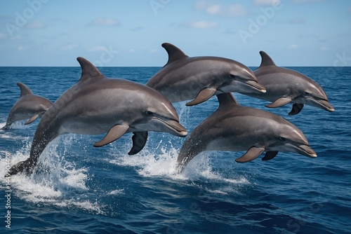 © Rawpixel.com, Fototapeta premium Dolphins leaping ocean waves
