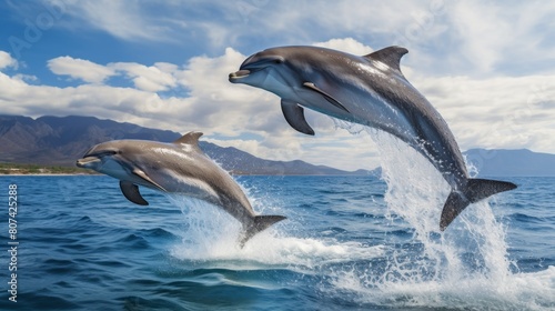 © Balaraw, Fototapeta premium Dolphins leaping out of the ocean