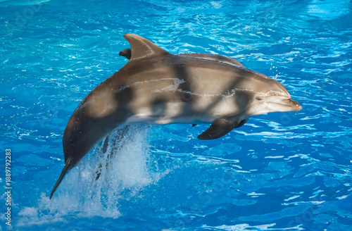 © Vitaly Ilyasov, Fototapeta premium Dolphins performing at the dolphinarium in Sochi Adventure Park.