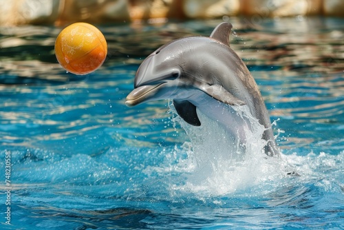 Naklejka premium dolphins performing show at the circus,dolphinarium