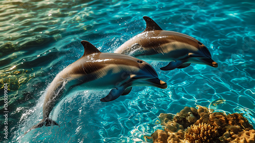 © Jessa, Obraz premium Dolphins playing in crystal-clear water