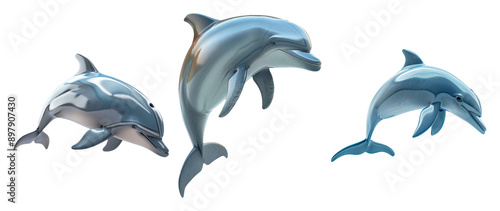 © Putra, Fototapeta premium Dolphins Swimming Collection Isolated on Transparent Background