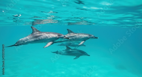 © noksvel, Obraz premium Dolphins swimming gracefully in crystal-clear ocean waters