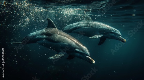 Fototapeta premium Dolphins swimming in clear blue ocean waters. Aquatic Sealife. Ocean....