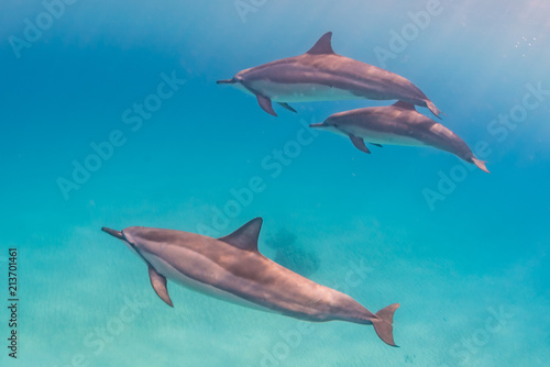 © Melissa Burovac, Fototapeta premium Dolphins swimming in clear blue water