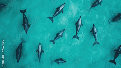 Fototapeta premium Dolphins Swimming in Clear Blue Water from Above