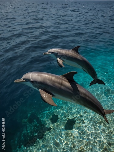 © claudunia, Obraz premium Dolphins swimming in Egypt.
