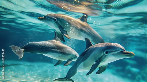 © Aqsa, Obraz premium dolphins swimming in the ocean together.