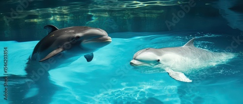 © Andrii, Fototapeta premium Dolphins swimming playfully in clear water