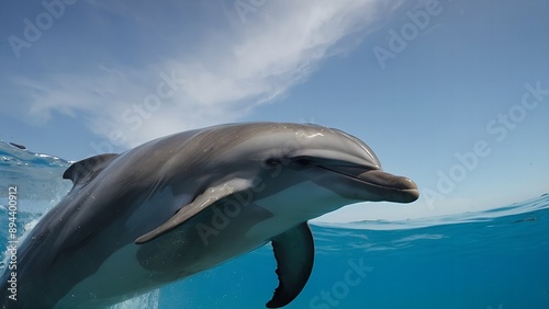 © Oleksandr, Naklejka premium Dolphins swimming together in perfect harmony