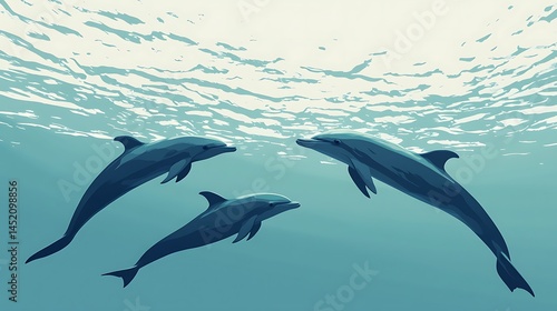 © MASJAB, Fototapeta premium Dolphins swimming underwater ocean.