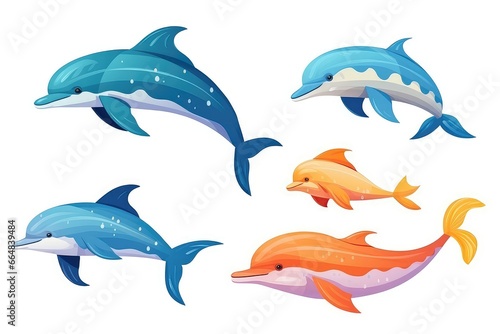 © Anastasiia, Obraz premium Dolphins Swimming With Colorful Fish And Sea Animals