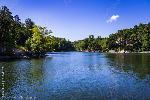 © Jennifer Rose, Naklejka premium Dom nad jeziorem w lecie