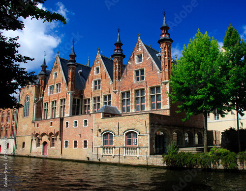 © TruNorth Images, Naklejka premium Dom nad kanałem w Brugii, Belgia