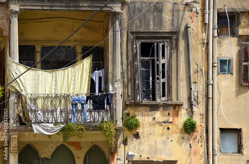 © thauwald-pictures, Obraz premium Dom zniszczony wojną z dziurami po kulach w fasadzie