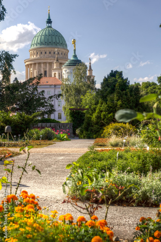© 3plusx, Naklejka premium Dome and old town hall in Potsdam behind a flowered park