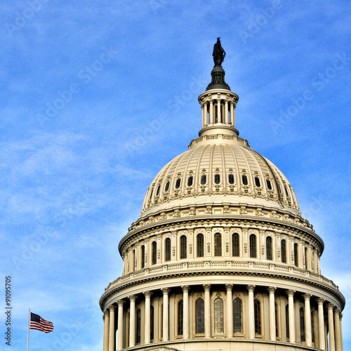 Obraz premium Dome of the Capitol building and American flag