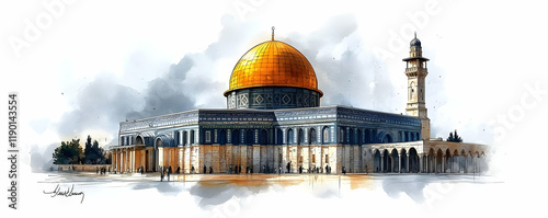Fototapeta premium Dome of the Rock, Jerusalem watercolor